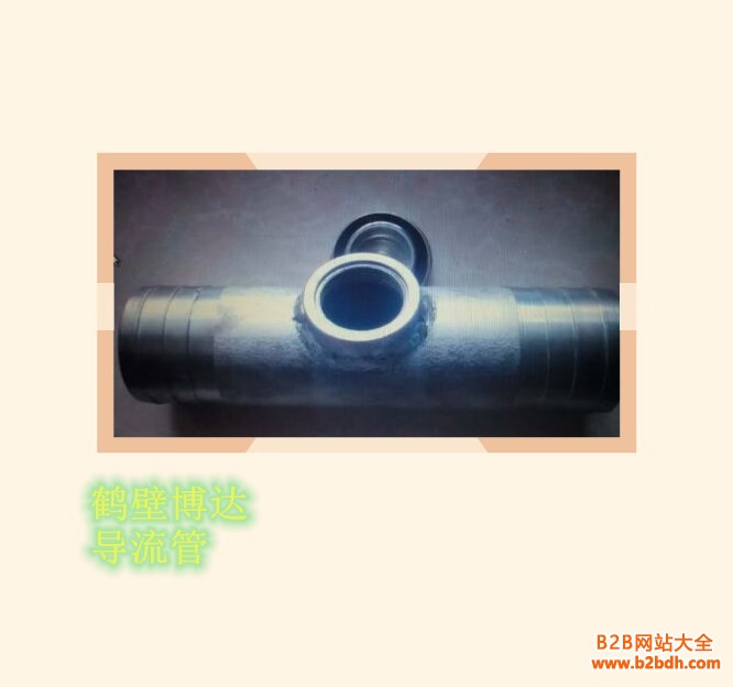 导流管,又叫瓦斯抽放综合参数测定仪快速接头,它主要配套瓦斯抽放综合参数测定仪使用,包括主体、瓦斯测量孔、隔尘滤网等,所述的主体为管状体。在管状体的管壁上设置有瓦斯测量孔,导流管在使用时串联在钻孔瓦斯抽放管道上,由于在导流管的管壁上设置有测量孔,测量孔包括瓦斯采集孔和流量探针插入孔。使用时,直接将便携式瓦斯抽放综合参数测定仪的探测器与导流管上的测量孔连接,就可以随时测量,观测瓦斯的抽放情况;另外,管状体内径向设置有隔尘滤网可以阻挡大颗粒粉尘冲击流量探针插入孔内的流量探针。瓦斯快速接头结构简单,使用安全,可以实现瓦斯样气的采集,瓦斯浓度、流量、温度及压力的测量等功能,使用起来十分方便.